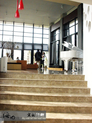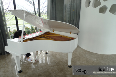 在挑高的大廳裡,有架白色的演奏鋼琴(對...那個人是我:P)