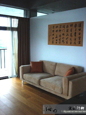 小客廳放了張几皮沙發,牆上掛著一幅書法,內容是劉脊虛的《闕題》。