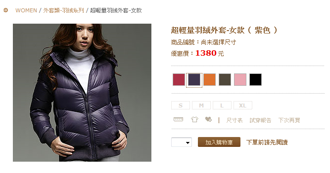 隔了一週,噗浪上總算看到補貨的訊息,馬上敗了一件紫色的!