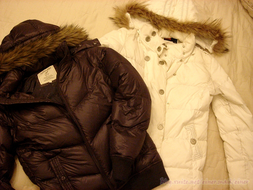 ↑Lativ超輕量羽絨外套-紫色和原本的舊白色羽絨長外套
